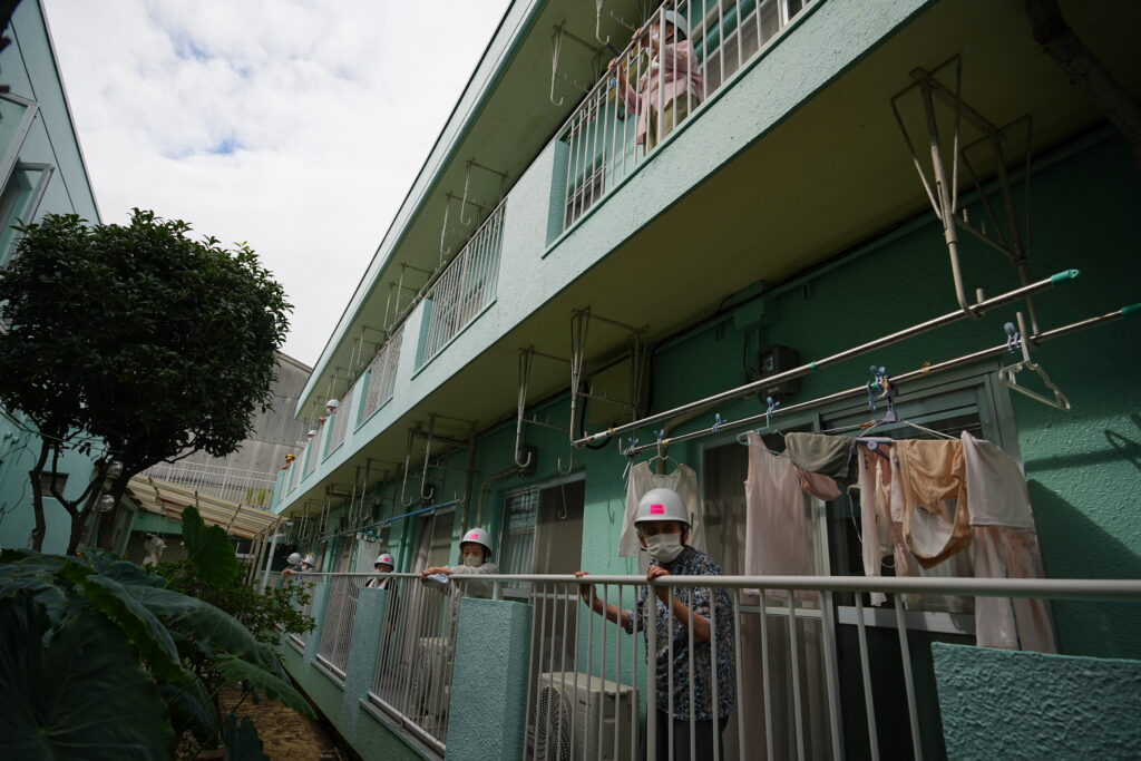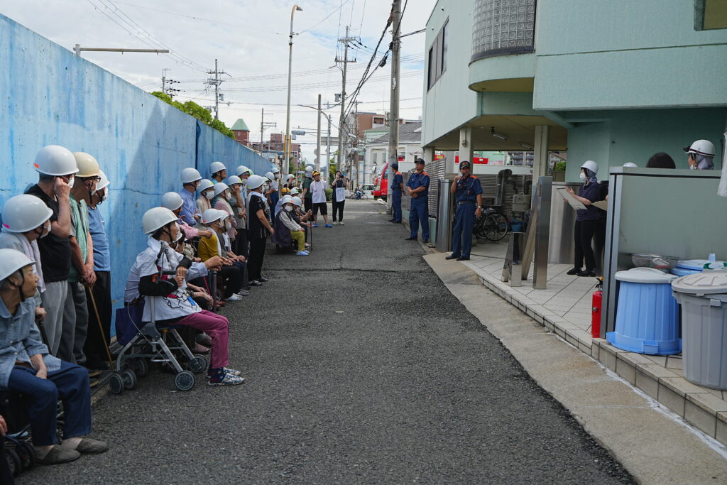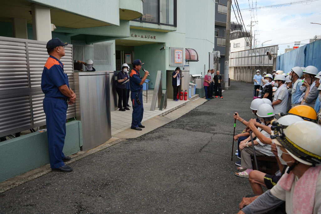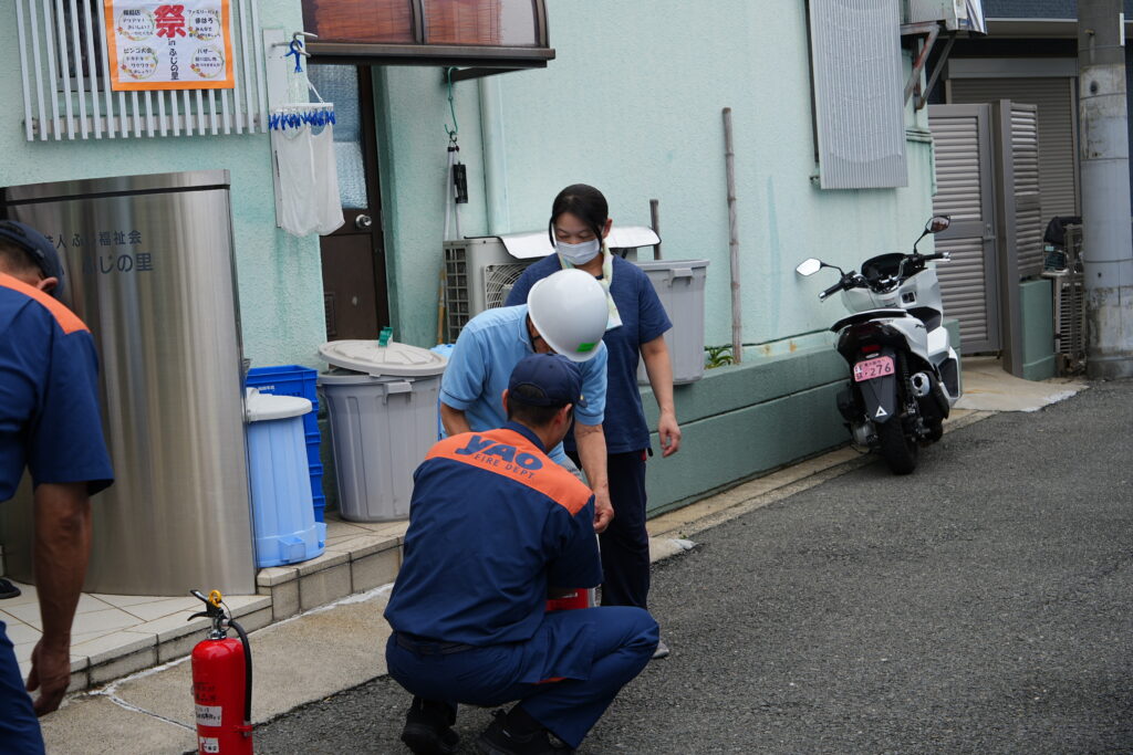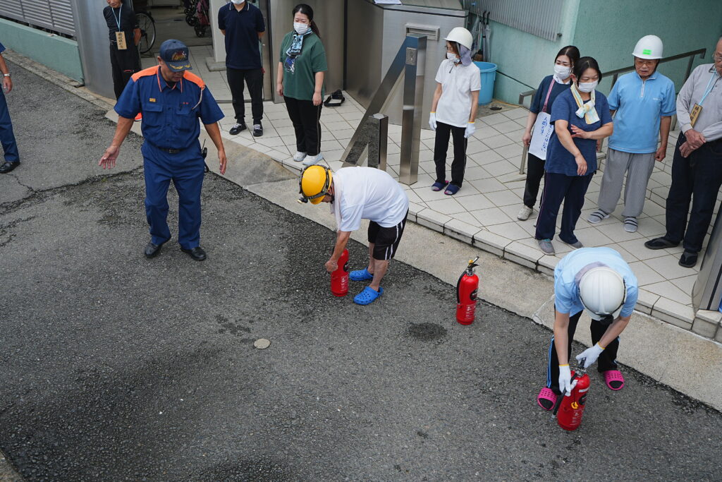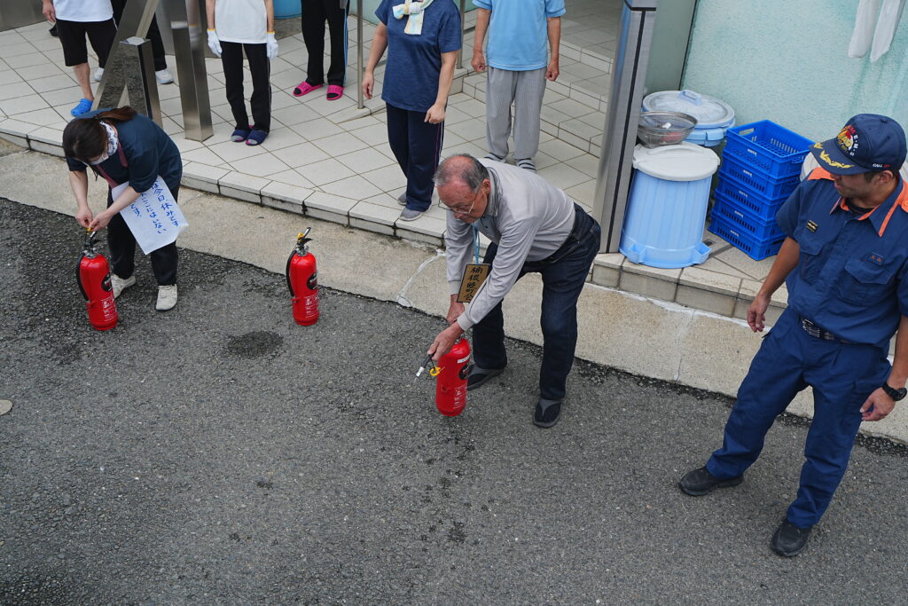 投稿日: 2025年11月12日2025年11月12日お知らせ避難訓練~消防士の方立会い~ ベランダに避難。 避難完了 消防士さんより講評をいただきました 消火器の使い方の説明 消防士さんに教わりながら初期消火の訓練。 職員、入居者の方 町内会会長も体験しました。